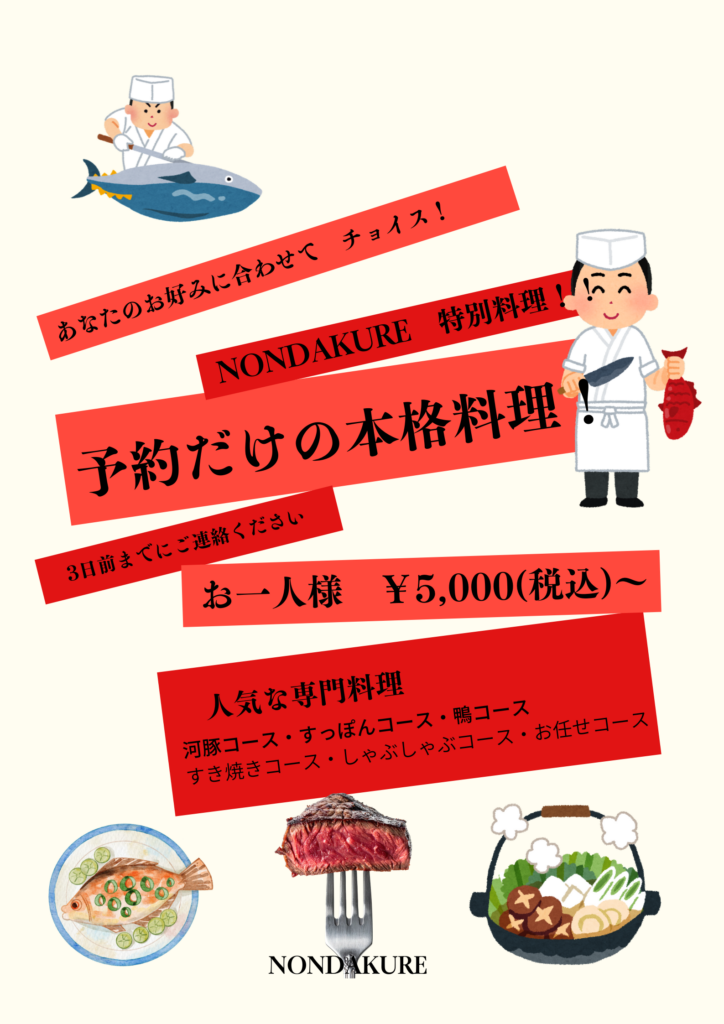 NONDAKURE!おかずが得意な板さん!我流料理をお楽しみ下さい!